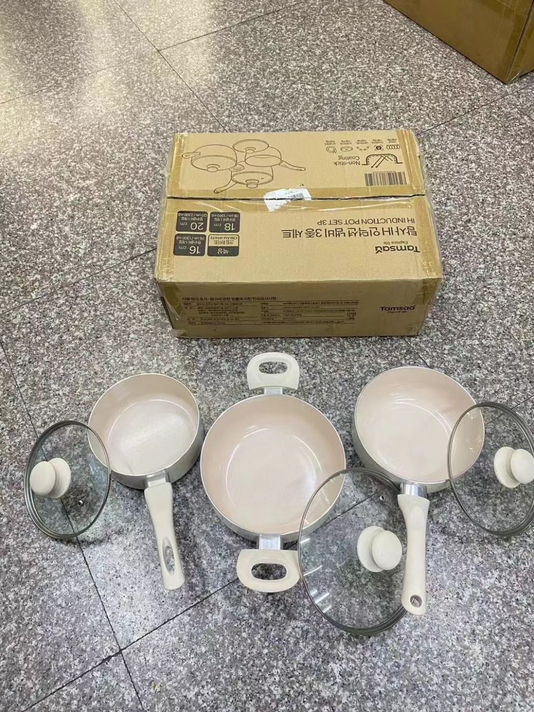 Bộ 3 nồi chảo chống dính hãng Tamsaa ( Hàn Quốc ) – có nắp kính dùng được bếp từ