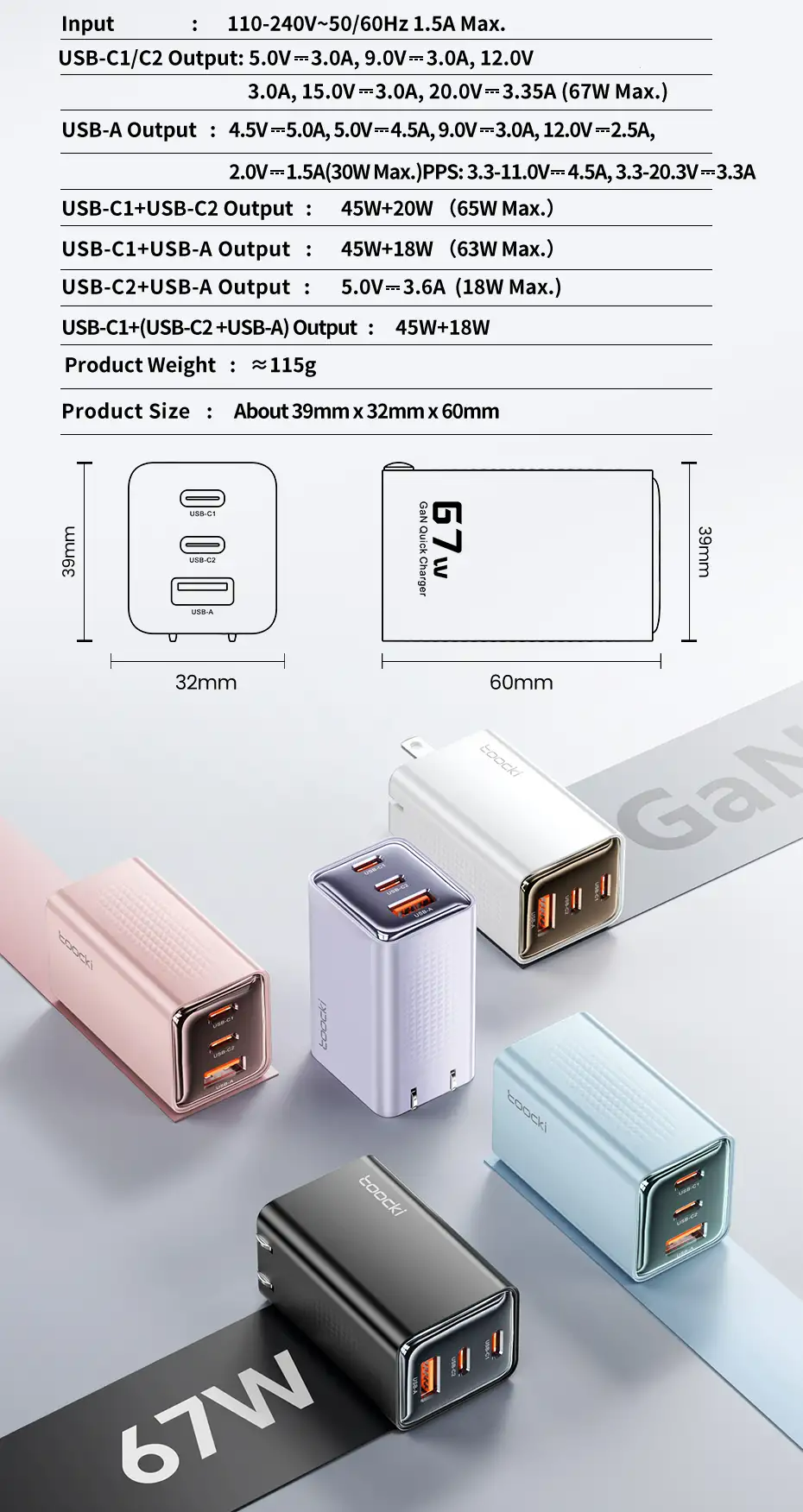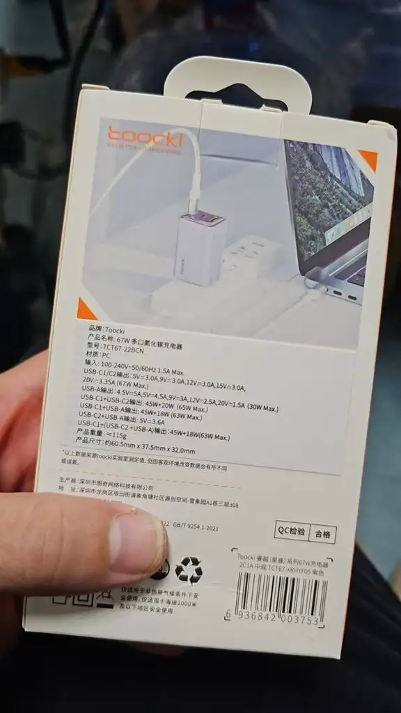 Thông số kỹ thuật Củ Sạc Nhanh Gan Toocki 67W