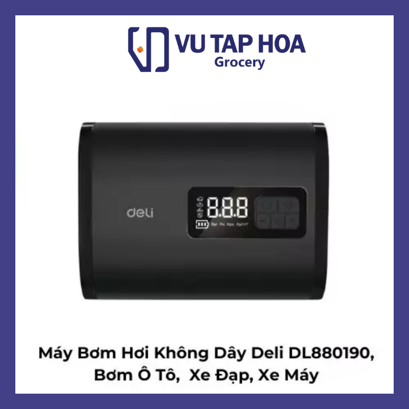 Máy Bơm Hơi Không Dây Deli DL880190, Bơm Ô Tô, Xe Đạp, Xe Máy
