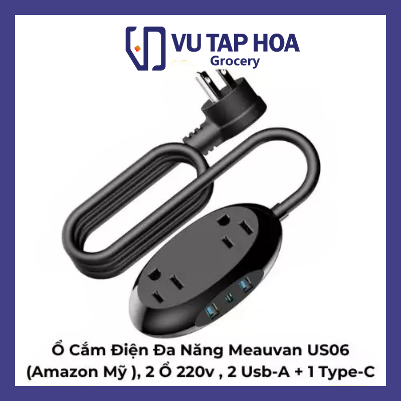 Ổ Cắm Điện Đa Năng Meauvan US06 (Amazon Mỹ ), 2 Ổ 220v , 2 Usb-A + 1 Type-C