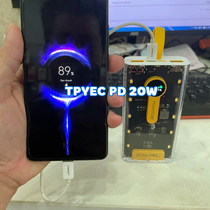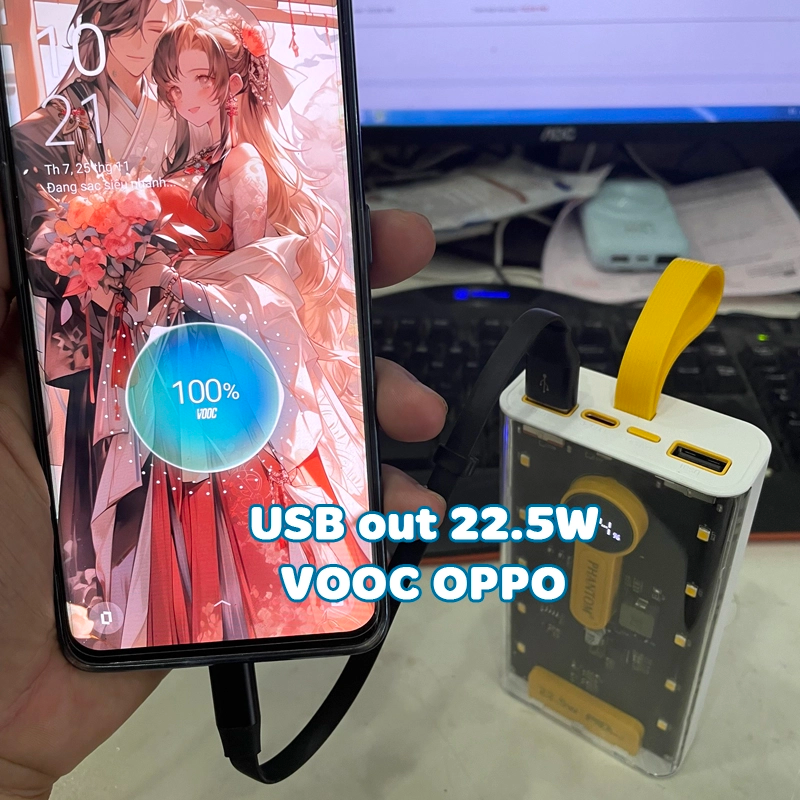 Cáp output typeC (sạc ra thiết bị): 5V/4.5A; 4.5V/5A; 9V/2A; 12V/1.5A (22.5W Max)